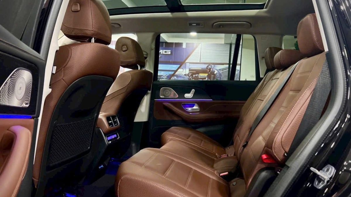 Tất cả hàng ghế đều được bọc da thật cao cấp. Hàng ghế thứ nhất chỉnh điện 16 hướng tích hợp sấy sưởi, nhớ ghế. Khoang hàng ghế thứ hai của Mercedes-Benz GLS 450 4MATIC dài hơn so với thế hệ trước 60mm, với ghế 6 hướng và rèm chắn nắng có thể điều chỉnh điện. Một không gian bên trong xe vô cùng thông thoáng nhờ cửa sổ trời toàn cảnh panoramic siêu rộng kéo dài gần đến hàng ghế thứ ba – nơi đủ rộng rãi thoải mái cho 2 người lớn trong suốt một hành trình dài. Cả hai hàng ghế này đều có khả năng gập điện tạo ra một thể tích khủng 2.400L trong những trường hợp cần chở nhiều đồ đạc trên xe.