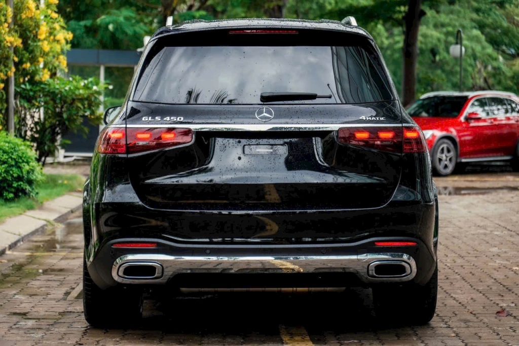 Khu vực đuôi xe với ngôn ngữ thiết kế mới nay đã đầy đặn, tròn trịa hơn so với thế hệ trước. Đuôi xe Mercedes-Benz GLS 450 4MATIC lấy điểm nhấn là 2 khối đèn hậu bo tròn với dải LED đồ họa hình học liền nhau rực rỡ và nổi bật dù là đêm hay ngày. Thanh chrome dày dặn và sáng bóng nối 2 phần đèn xe tạo cảm giác liền lạc, sang trọng hơn cho khu vực nắp cốp.